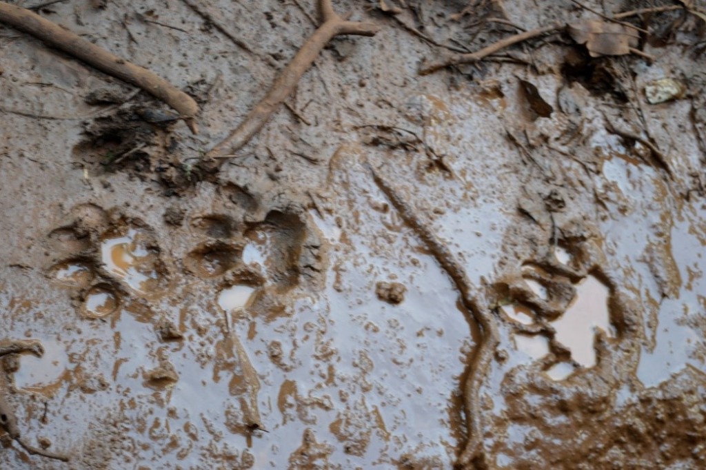 Our first exposure to sign of tigers’ presence in this tiger reserve was through spotting fresh pug marks on forest path, which became muddy because of heavy to moderate down pour at the beginning of our first jeep safari in the evening of 30th September. The question came in everybody’s mind, that those pug marks belonged to whom, which were trailing from muddy forest path to dense undergrowth?