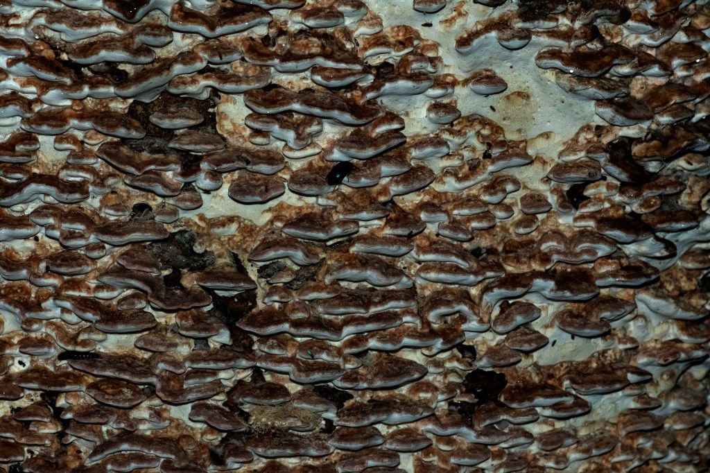 Fungi break down plant and animal matter and recycle important elements like carbon and nitrogen back into the natural environment. The rainforests of the Western Ghats provide ideal conditions for the occurence of a wide diversity of remarkable fungi. Among the five different types of fungi I could spot during my Coorg exploration, one was Coprinus sp. As these are saprotrophes, they decompose wood, dung, and forest litter. Their spores, when dissolved, form a black, inky substance that can be used as writing ink. Hence, their common name–ink cap fungus. Other species I found were Stereum and Foitopsis bracket fungi. Another mind blowing observation during my “macro-photography” in Parvathi Valley Coffee Estate was display of mycelium network of Schizophyllum (bracket fungi). Mycologist Paul Stamets, in his book titled Mycelium Running: How Mushrooms Can Help Save the World, mentioned, “…mycelium is the neurological network of nature. Interlacing mosaics of mycelium infuse habitats with information-sharing membranes. These membranes are aware, react to change, and collectively have the long-term health of the host environment in mind. The mycelium stays in constant molecular communication with its environment, devising diverse enzymatic and chemical responses to complex challenges.”