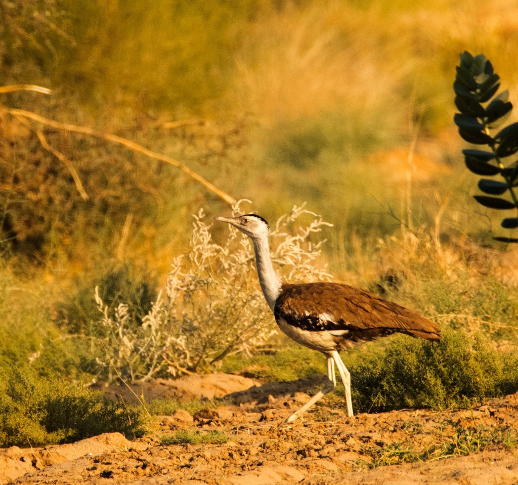 MacQueen’s bustards on the other hand is winter migratory species to Thar Desert. These Mongolian birds leave the wintering areas in Afghanistan and Pakistan from mid to late March and arrive in their breeding grounds after about two months of flying, taking a path that avoids the high mountains of the Himalayas. Their migrations have been tracked using satellite transmitters.