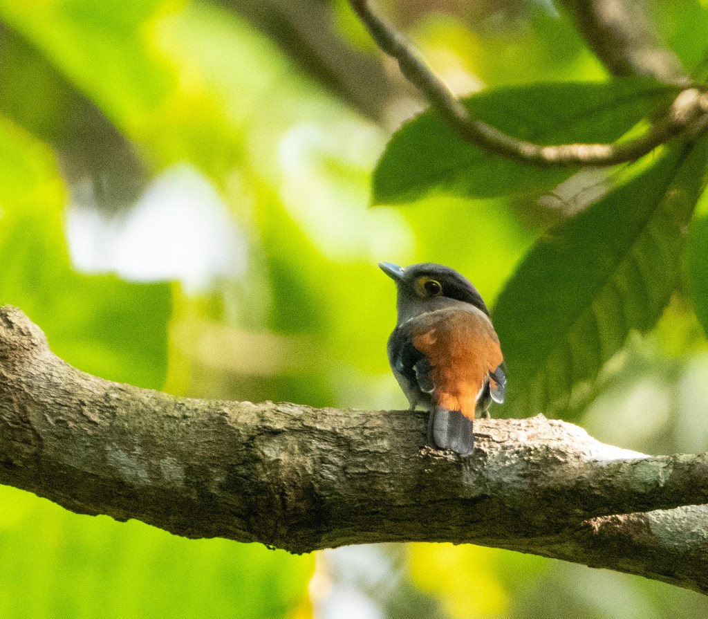 Before we returned to our camp at 12:00 noon, quite a few rare birds we spotted and shot. Some of them were slaty bellied tesia, white tailed flycatcher, streaked wren-babbler, white throated bulbul, rufus backed sibia, long-tailed broadbill, Durian redstart, and eye-browed wren-babbler. Afternoon again we explored the road goes through buffer zone of Namdapha towards Vijaya Nagar, where India ends, and Myanmar starts. Oriental hobby, rufous-gorgeted flycatcher, dark breasted rose finch, little forktail were some notable sightings. Our day ended with much delight by sighting of Oriental Bay owl, which we were trying to spot from day one.